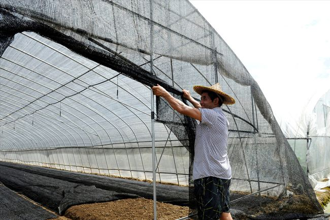 一、覆蓋遮陽網:在棚內懸掛遮陽網能有效降低棚內溫度。在大棚后墻外沿懸掛1``2條遮陽網,可以有效降低大棚內溫度。如果使用多層薄膜覆蓋,降溫效果更好。